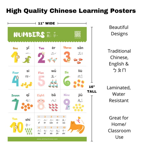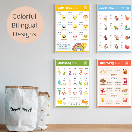 Cute Bilingual Chinese-English Poster Set (Traditional Chinese and Zhuyin) 可愛中英文幼兒學習海報