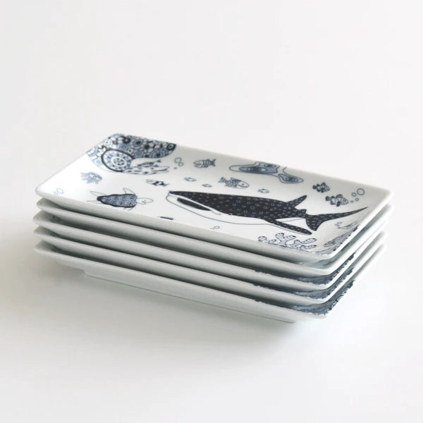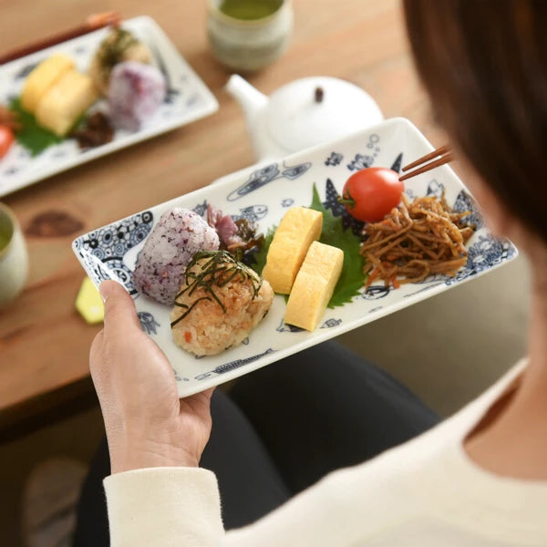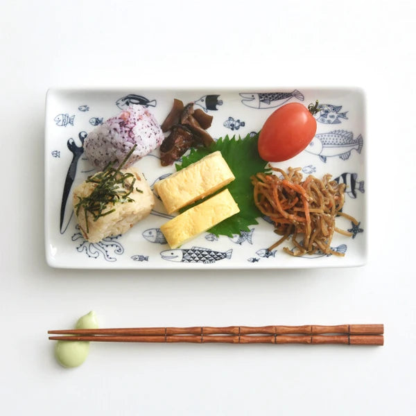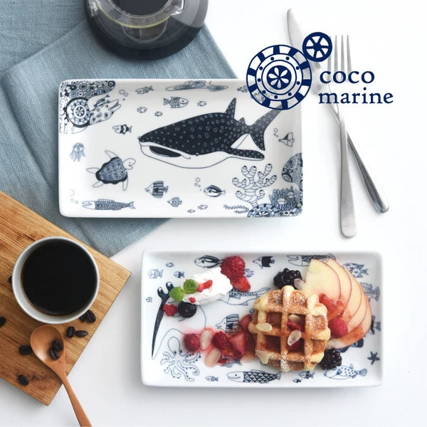 Elevate your family dining and immerse in the enchanting underwater world with Coco Marine series Hasami Ware from Japan. This long square plate is designed for both style and functionality, perfect for serving sashimi, bbq grill, fish, afternoon snacks, and more. Showcase culinary creations at the convenience of home.