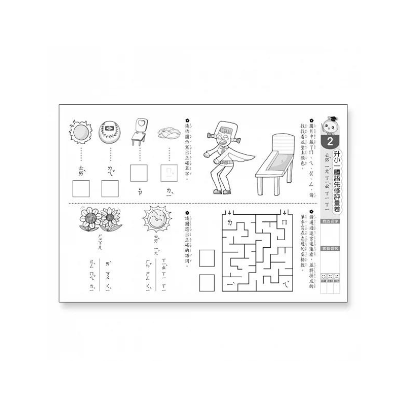 結合注音基本概念。配合圖像認知設計多元化題型。幫助孩子於未來的國字學習奠定良好基礎。