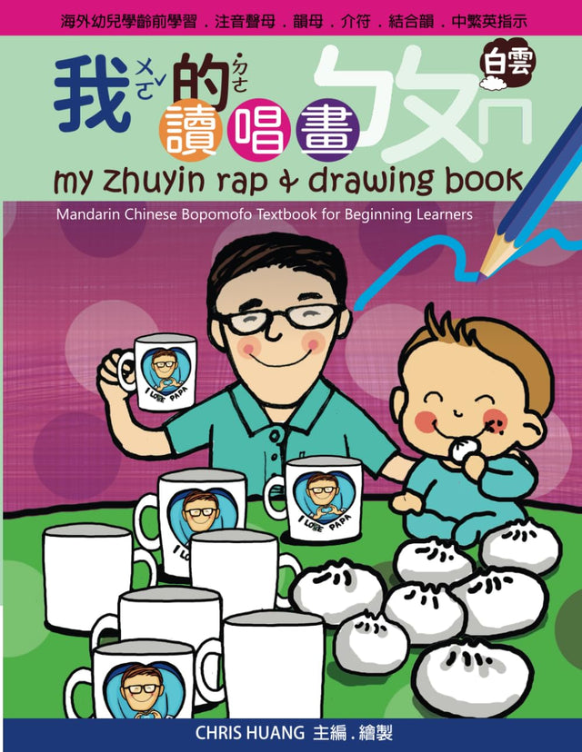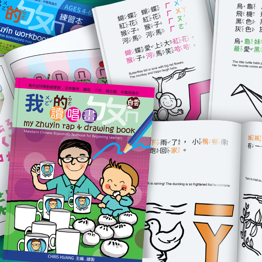 My Zhuyin Series are illustrated by CHRIS HUANG, an artist, a designer and a Chinese teacher. This series contain this textbook and a workbook. All contents are well color coded and consistent pictorial symbols for helping children to easily remember them.