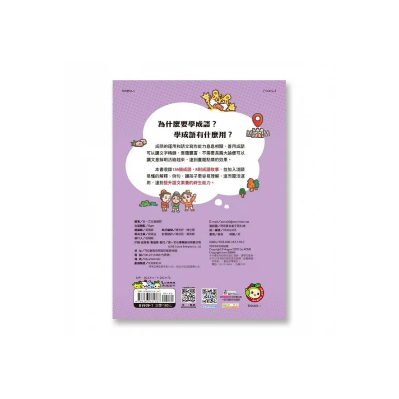 為什麼我要學成語?學成語有什麼用?成語的運用和語文寫作能力息息相關,善用成語可以讓文字精鍊,意蘊豐富,不需要長篇大論便可以讓文意鮮明活絡起來,達到畫龍點睛的效果。本書收錄136個成語,8則成語故事,並加入淺顯易懂的解釋、例句,讓孩子更容易理解,進而靈活運用,達到提升語文素養的終生能力