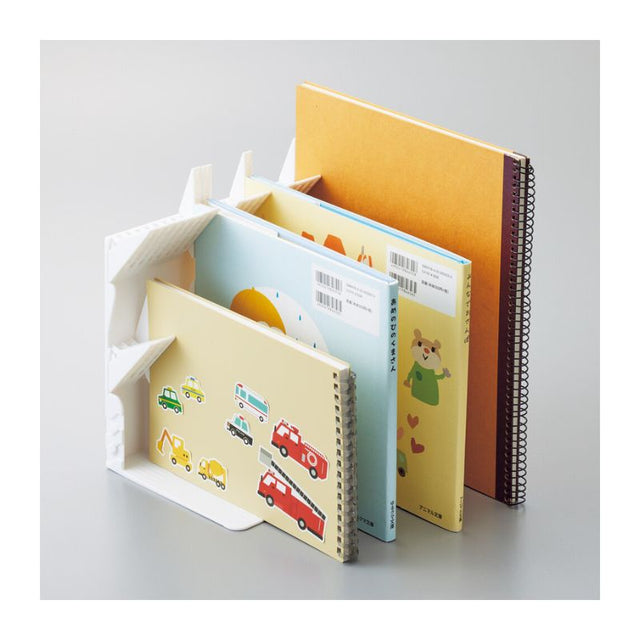 Upgraded from Japan's popular LIHIT LAB Expandable Bookend & Media Organizer, This is a bookend re-imagined and sized up to keep larger books (magazines, textbooks, workbooks, and etc.) stand upright at all times, even when a book has been taken out.