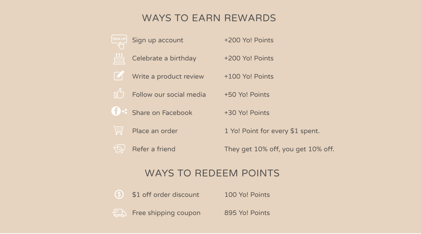 ✨ And here’s a little treat: when you create your Yo! Baby Shop account, you’ll instantly receive 200 bonus points—our way of welcoming you into the family! (Remember, you’ll need an account to redeem rewards.)