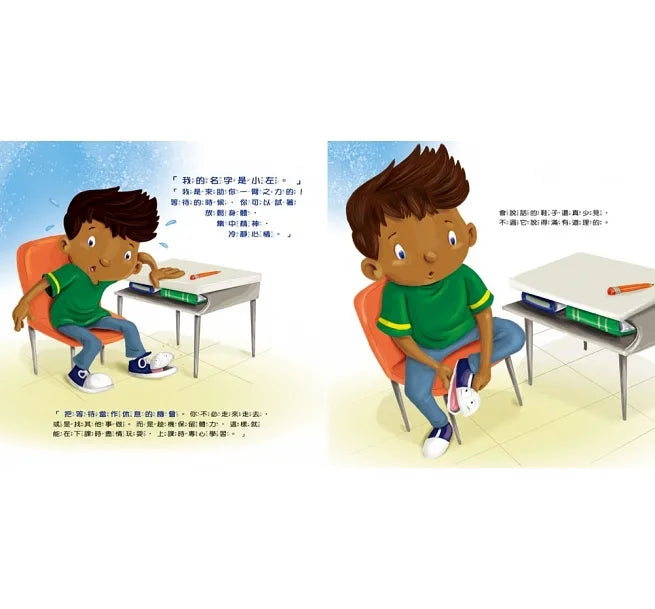 雖然大腦告訴自己,排隊時應該好好待在位子上,可是賈伯的身體就是忍不住動來動去、扭來扭去。