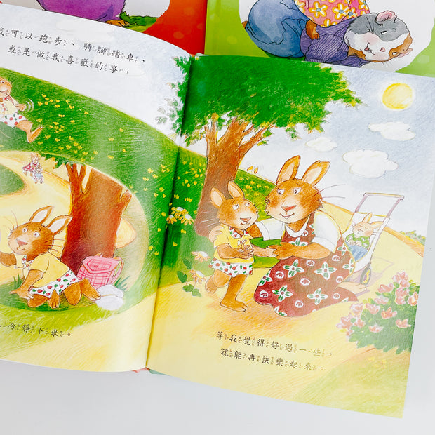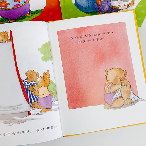 1. 引導小朋友談談看,自己遇到和動物主角相同情境時,有什麼樣的感覺,會怎麼辦,藉此親子互動增加孩子的情緒語彙和表達能力。