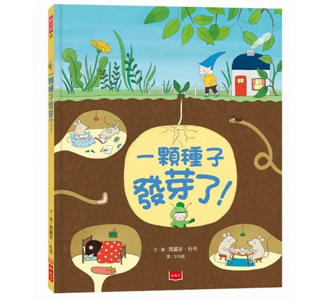 ▍以剖面圖的方式呈現地面上與地底下的情景,生動描繪出植物發芽、長根、開花、結果的生長經過,也可看出花園居民們溫馨舒適的地下房屋