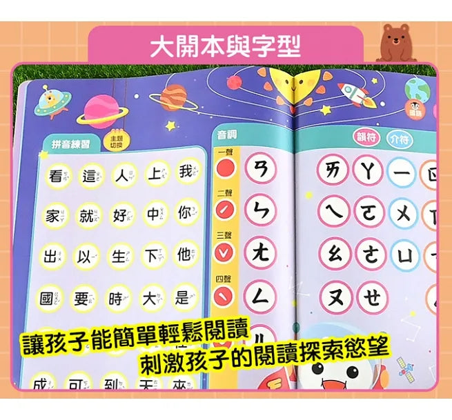 只要一書在手,可同時學習注音符號、音調、造詞及造句,語言能力全部一把罩。