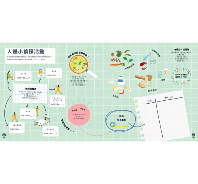 ★超酷人體趣味知識:超過100個關於人體的活知識!拿起「生態小偵探放大鏡」化身為小偵探,深入探索神奇的人體世界,尋找深藏不露的層層機關、認識忙碌的大腦以及各種維持健康身體的指南大公開,看看我們是怎麼長大的呢?