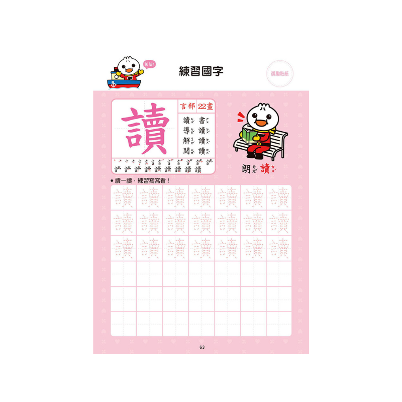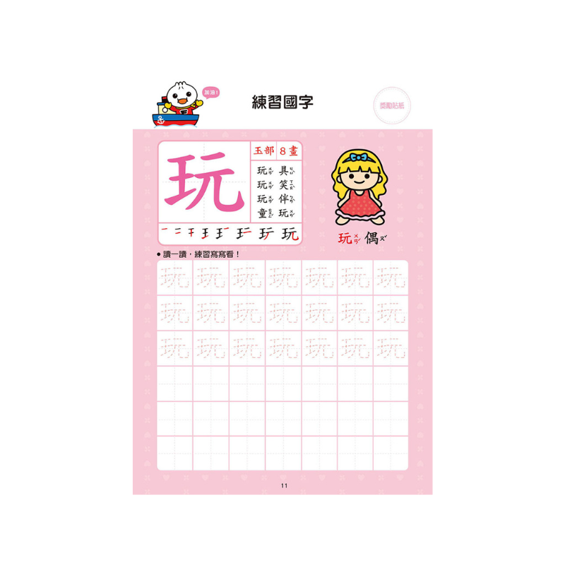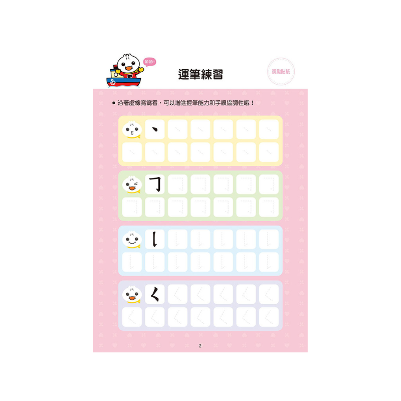 學習部首、筆畫數及310個語詞,提升識字及書寫能力,幫助孩子順利銜接小學國語課程。