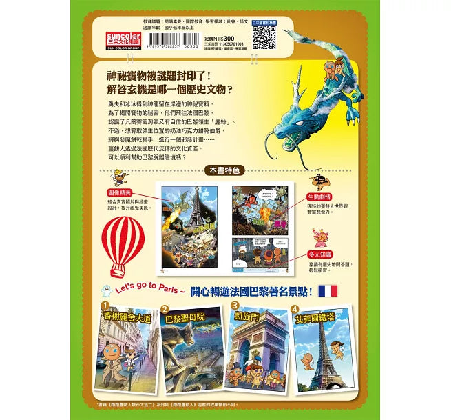 故事巧妙融合巴黎的重要歷史、地理背景與文化知識,讓孩子在刺激的冒險情節中,自然培養閱讀素養、國際觀與想像創造力。