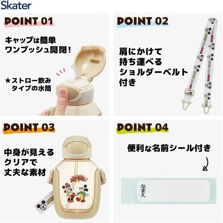 SKATER One-Push Straw W ater Bottle with Carrier (530ml) - Mickey & Friends