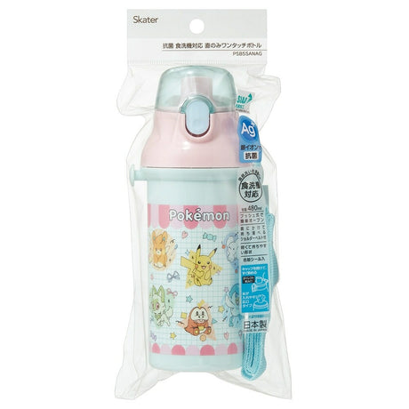 SKATER One-Push Straw Water Bottle with Carrier (530ml) - Pokemon