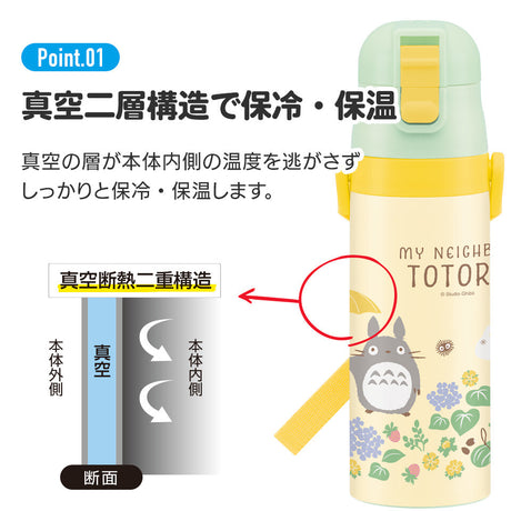 SKATER One-Push Straw Water Bottle with Carrier (530ml) - Sumikko Gurashi