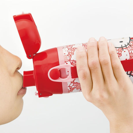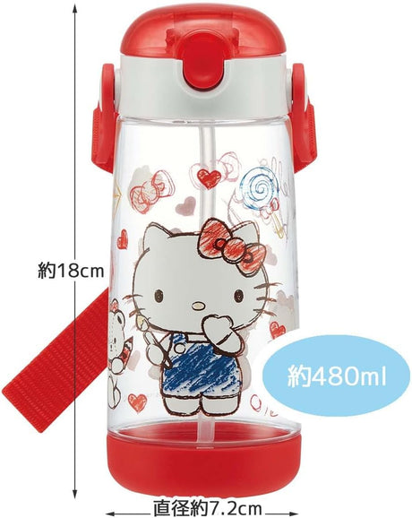 SKATER One-Push Straw Water Bottle with Carrier (530ml) - Hello Kitty (Red)