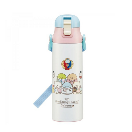 Skater Antibacterial Flask Water Bottle with Carry Strap (480ml) - Sumikko Gurashi School