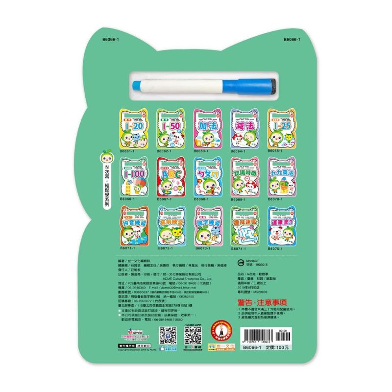 本書設計各種可愛的數字連點圖案,由簡到繁,循序帶領孩子學習了解數字1-100數序,藉由多變有趣的連點練習,幫助孩子建立數序的概念。內頁採雙面上光,並隨書附贈白板筆,方便孩子擦寫,反覆練習。
