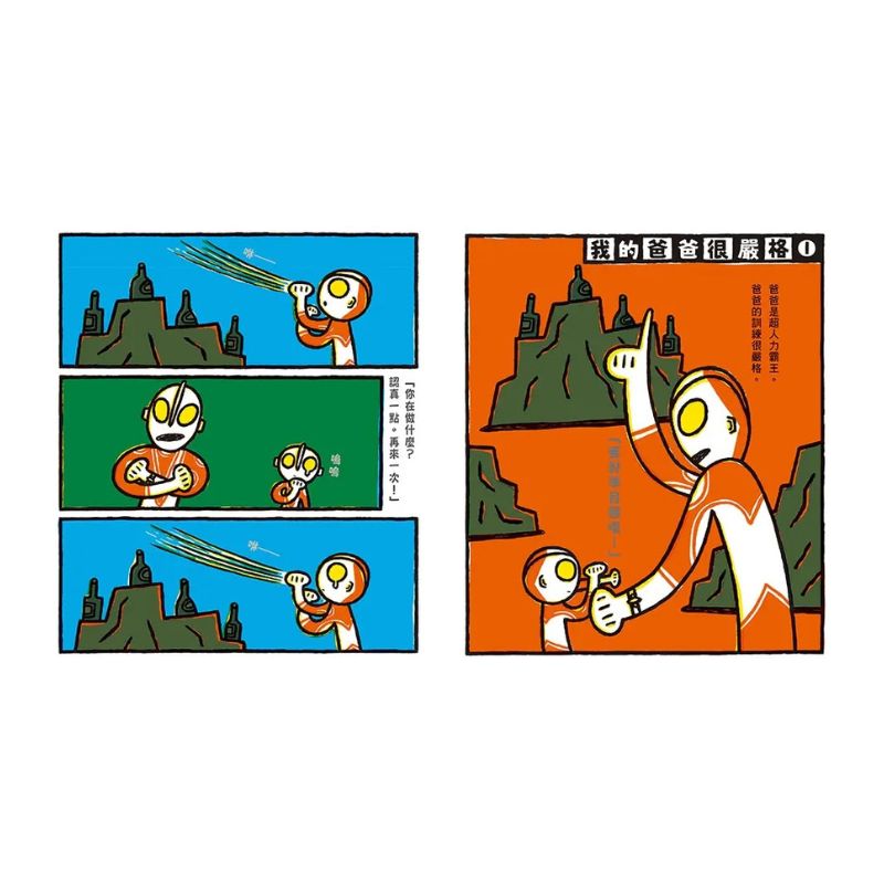 從父母小時候電視經常播放的「鹹蛋超人」,到近年仍受孩子們歡迎的「超人力霸王」,親子間對於超級英雄保護城鎮不受外星人攻擊的回憶,藉由閱讀宮西達也創作的「超人力霸王」系列繪本產生共鳴,增加親子互動性、創造更多共同話題。