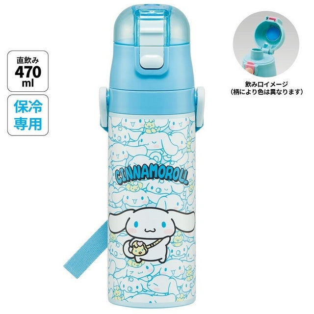 SKATER Stainless Steel Flask Water Bottle with Shoulder Strap - Cinnamoroll (470mL)