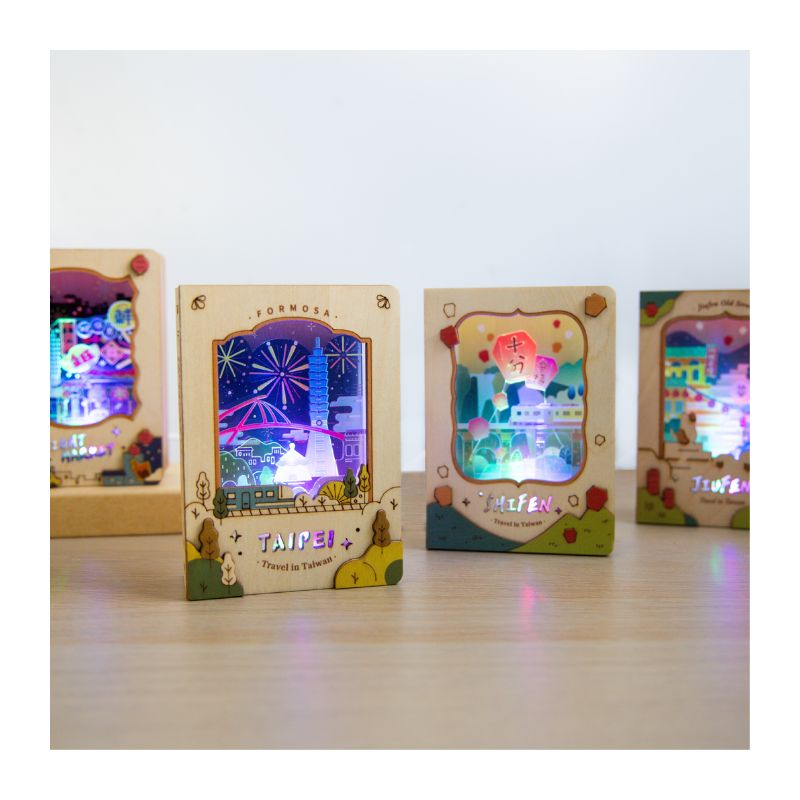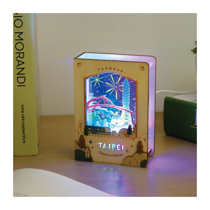 「璀璨風景燈|台北煙火」以台北城市輪廓與夜空煙火為靈感,透過層層光影變化,呈現煙火劃過天際的璀璨瞬間。點亮時,光影如同煙火綻放,靜靜訴說屬於台灣城市的美好記憶。