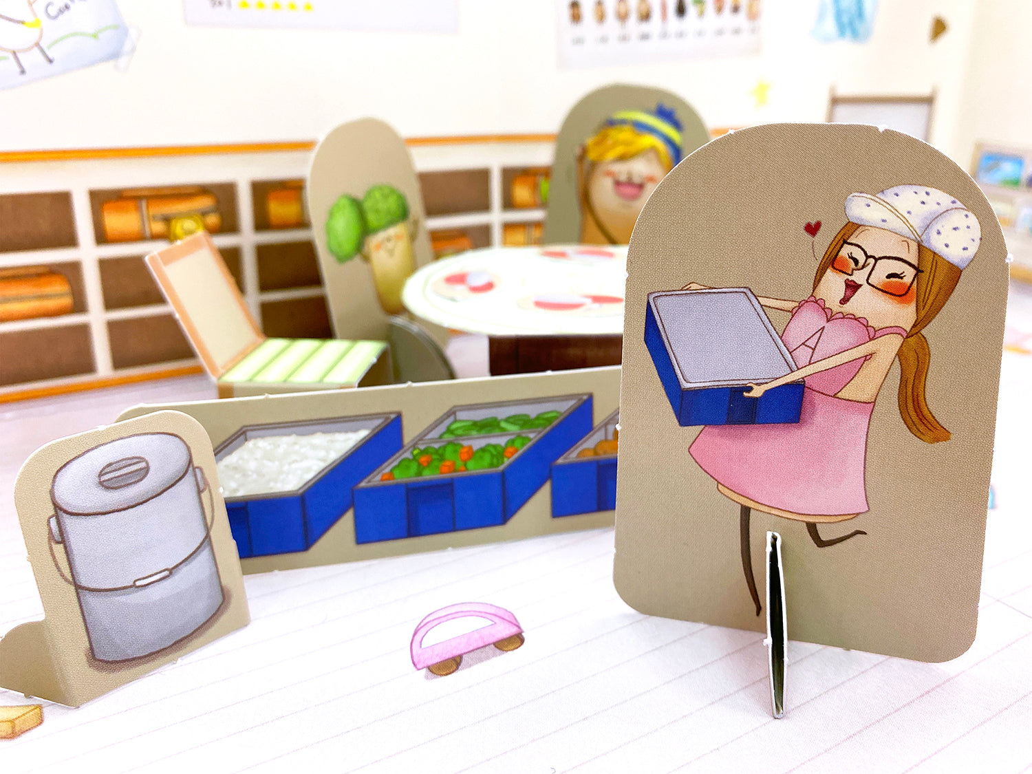 家家酒1號《同學基地》是幼兒園中彈性的活動區域,玩遊戲、畫畫、置放書包與水壺。「朋友」正是學校最棒的禮物!