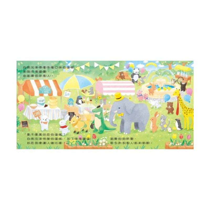 今天白熊兄弟的哥哥保羅突然心血來潮,決定要好好做蛋糕,而且還拿去市場擺攤呢!生意很不錯,招攬很多客人,兩兄弟互相搭配合作。弟弟諾爾暖心的幫忙招呼客人,不過看到哥哥厲害的手藝製作蛋糕,也忍不住想要吃。按照哥哥說著要跟大家排隊,但沒想到……最後卻發生意想不到的結局唷!