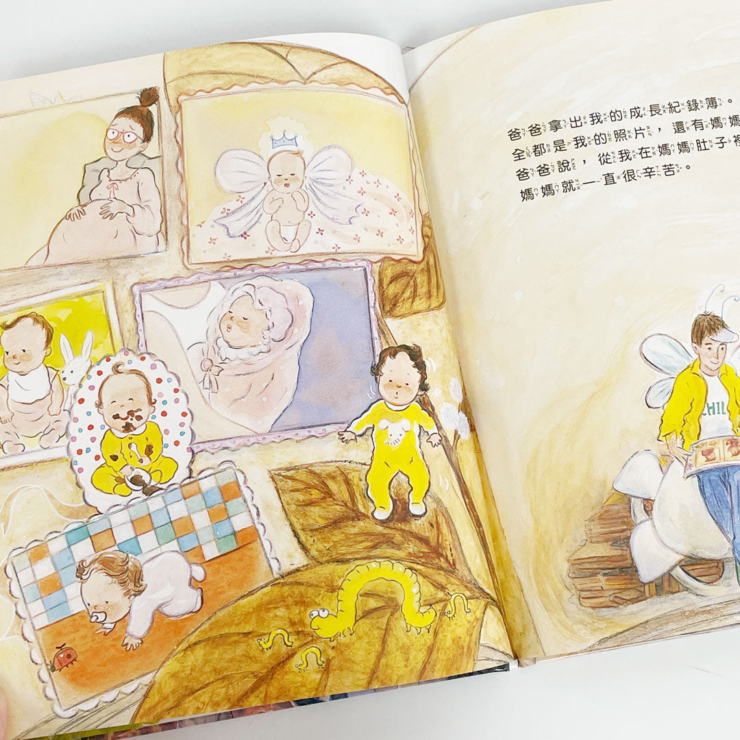 爸爸終於忍不住,拿出妹妹的成長記錄簿,一點一滴的告訴她,媽媽從忍耐懷孕的種種不舒服,到忍痛生下她,照顧她的過程。