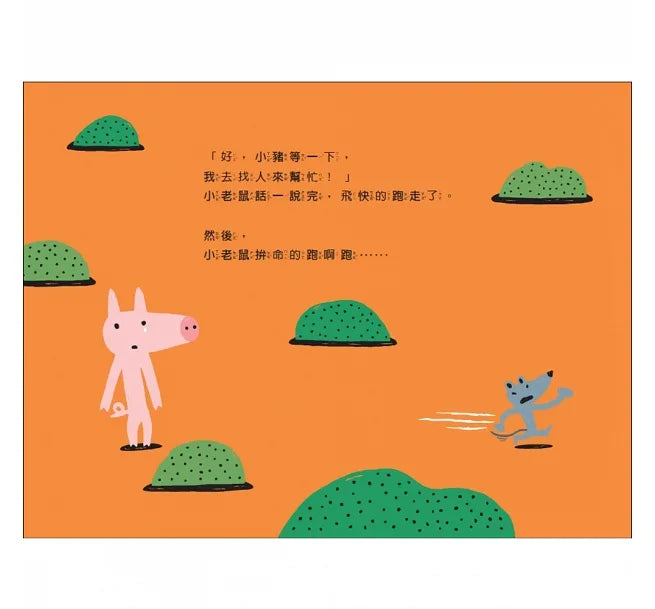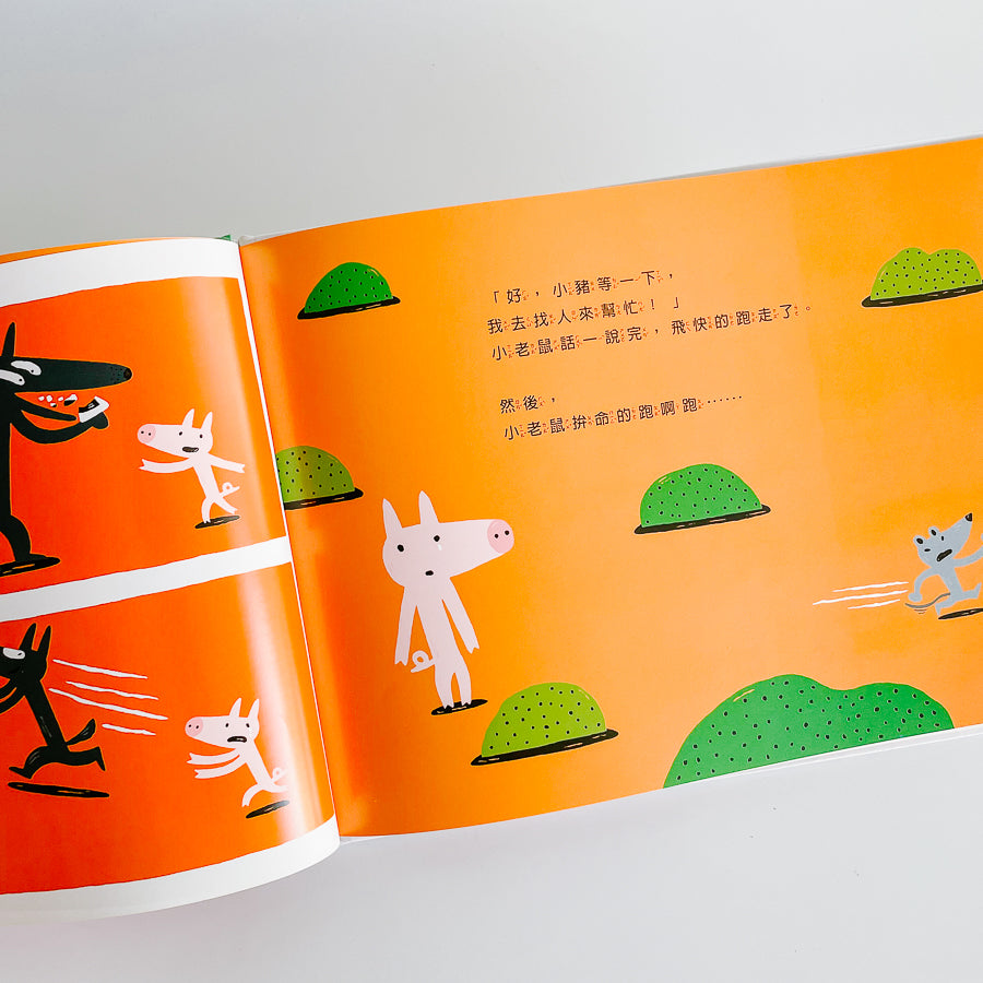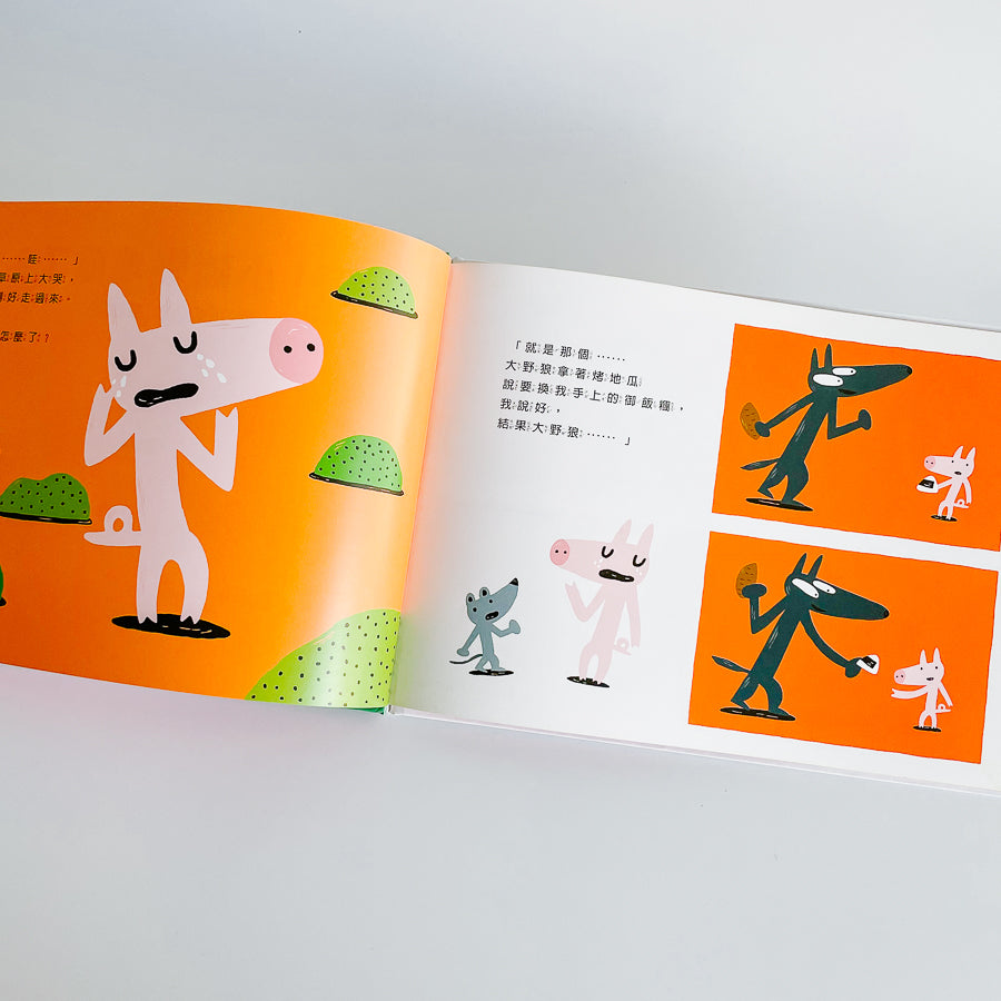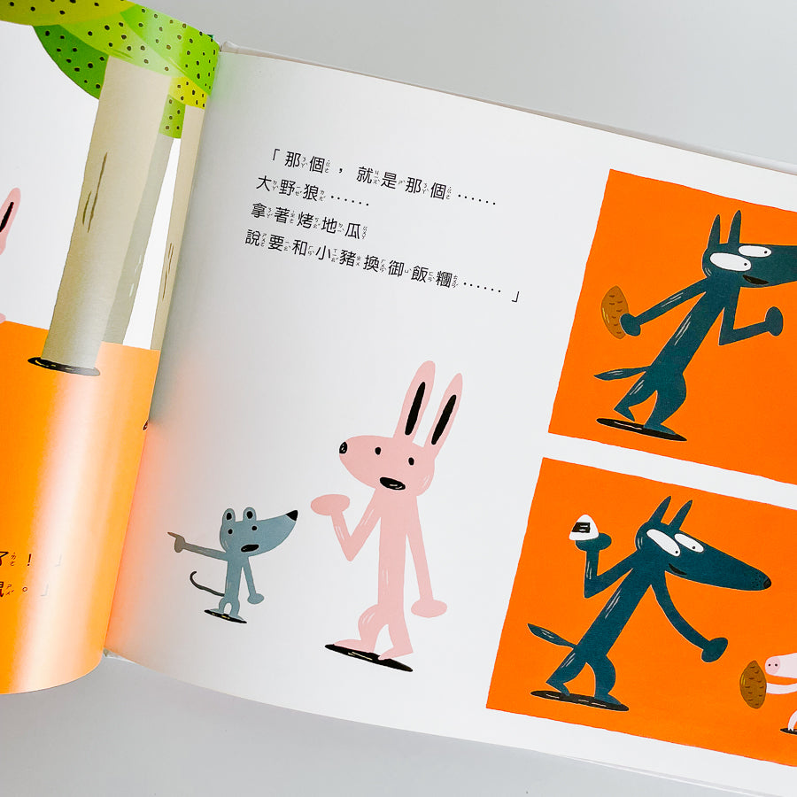 咦?故事怎麼越來越往奇怪的方向發展了?到底小猴子會在去找別人幫忙時,把小豬和大野狼的故事說成怎樣荒誕、好笑的劇情呢?而最後結局到底是怎樣呢?小豬能不能拿回他的烤地瓜?讓我們一起看下去吧!