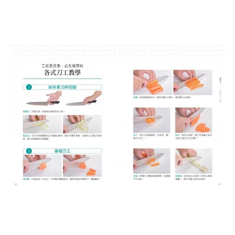 ●各式刀工及切法教學,輕鬆掌握食材特性,縮短料理時間。