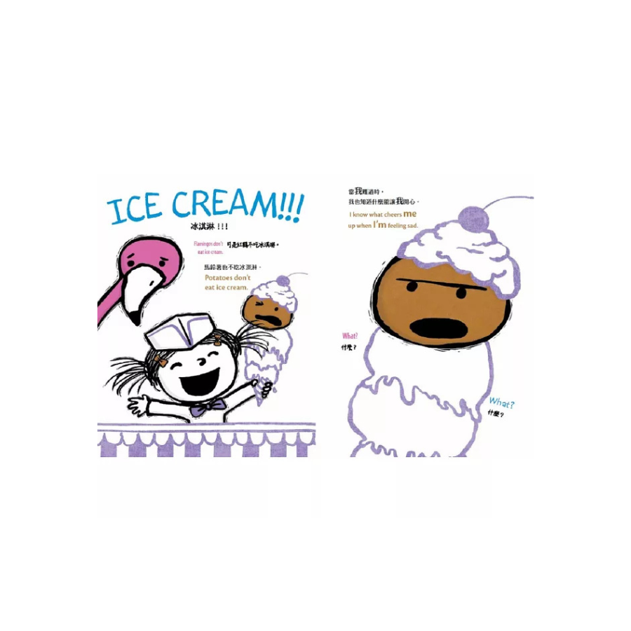 每個孩子都會有難過的時候,我們該如何趕走難過烏雲呢?在這本書中,作者布萊克將以三位主角:小女孩、馬鈴薯、紅鶴,陪孩子度過「我好難過」的時光。