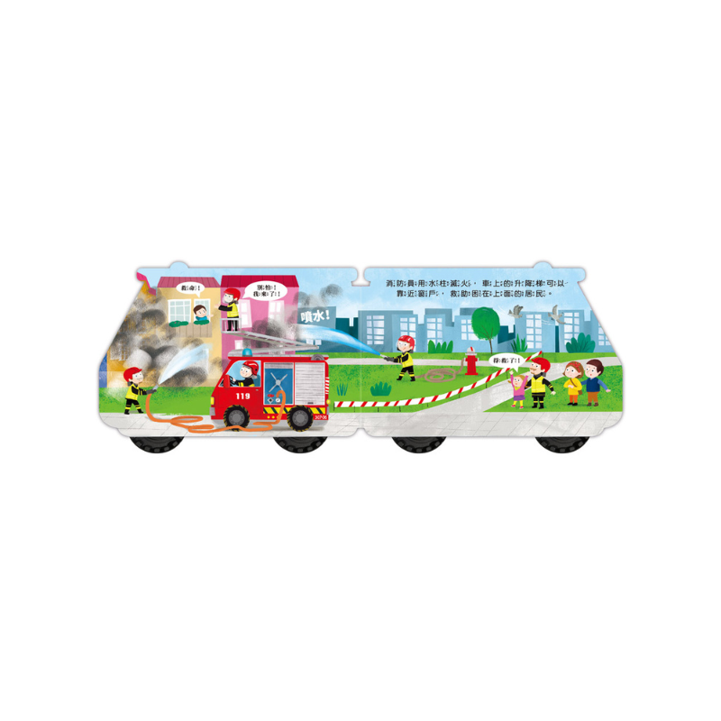 本系列共有小朋友最愛的警車、消防車、垃圾車、救護車,每本書下面都有順滑有趣的車輪,讓喜歡車車的孩子愛不釋手!除了認識交通工具之外,同時也能在遊戲中培養閱讀的好習慣,在玩樂中學習!