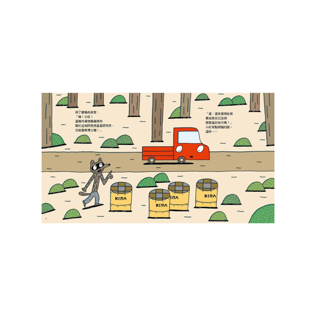 小紅和小綠接到任務,要將貨物送到遙遠的閃亮亮星星研究所,這趟冒險旅程的終點到底在哪裡呢?翻開驚喜大拉頁,就可以找到答案囉!