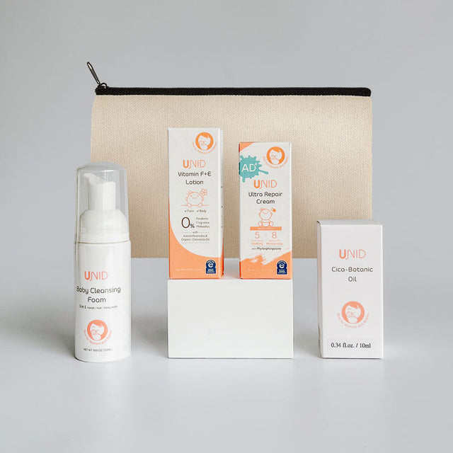 UNID 旅行保養組 為出外遊玩的家庭量身打造. 旅行中的大小孩皮膚尤為敏感, 乾裂. 尤其家中若有異膚敏兒.