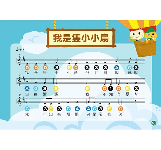 樂譜清楚標示音符名稱,並附上完整中文歌詞,初學者容易學習。
