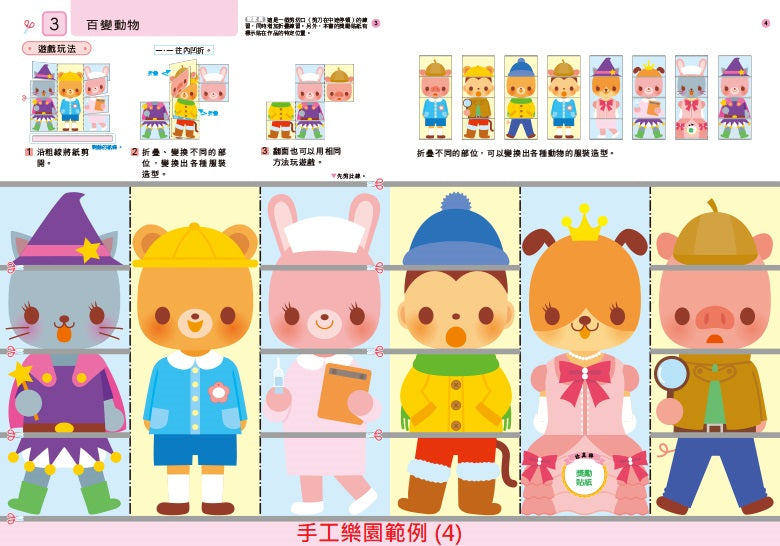 手工樂園:使用本書可以有效的進行剪切、折疊、黏貼等手工剪貼的練習,而且可以讓孩子運用完成的作品,進行快樂的遊戲,過程中訓練雙手靈巧度,培養創造力。