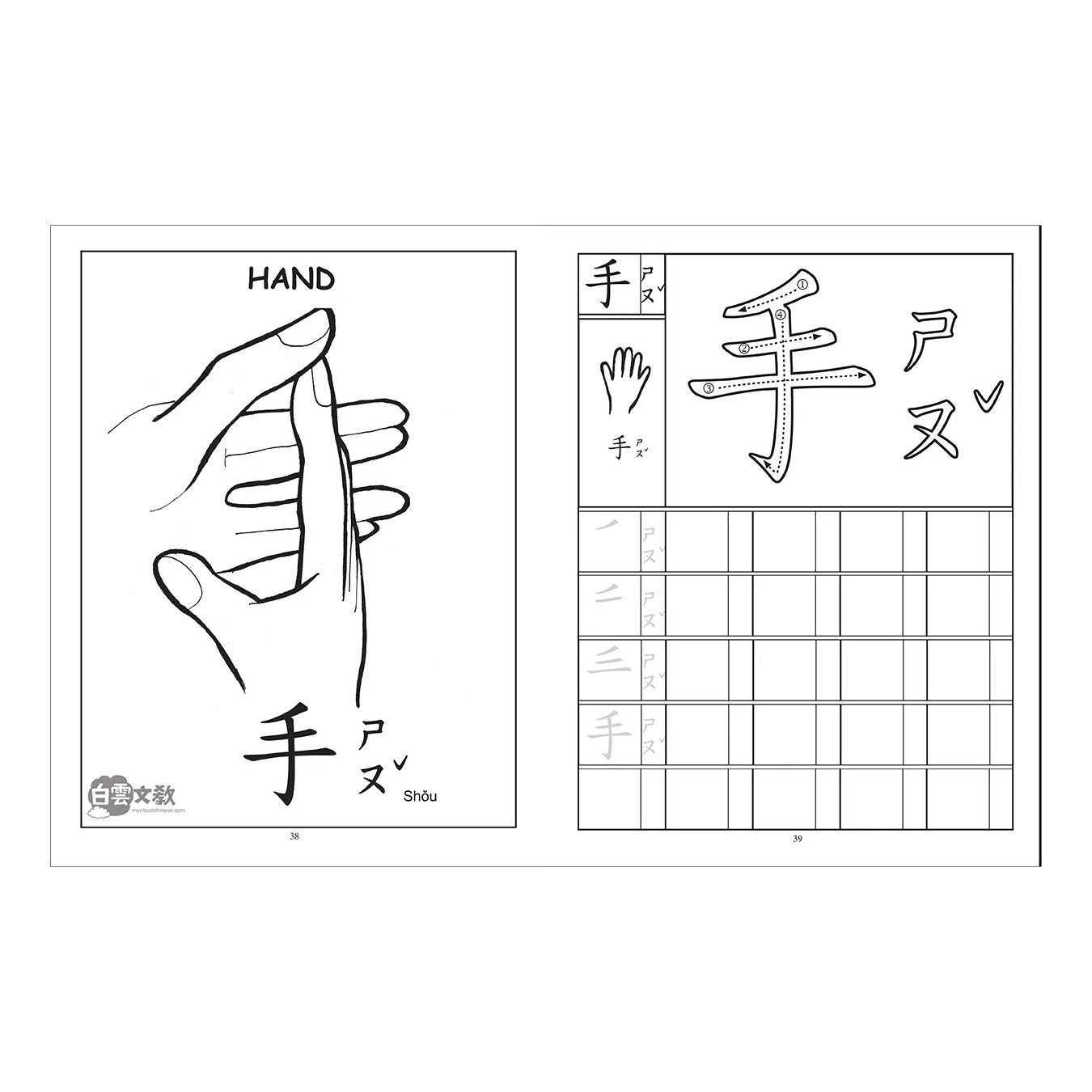 有別於一般傳統的重覆抄寫方式,這系列的圖像習字練習本,左頁為著色圖,圖像的設計完全與字本身連結的意思及樣貌,孩子著色的同時也可以加深記憶;右頁則是有正確筆劃的指示及注音,空格尺寸大, 適合幼兒的小手。幼兒學習成效不外乎是透過圖像記憶、操作體驗及快樂情境,然而學習中文的聴説讀寫中,「寫」對多語言環境下的海外兒童尤是困難。這種結合着色及識字的現代象形圖字,幫助孩子輕鬆學習, 減少中文記憶的負擔。