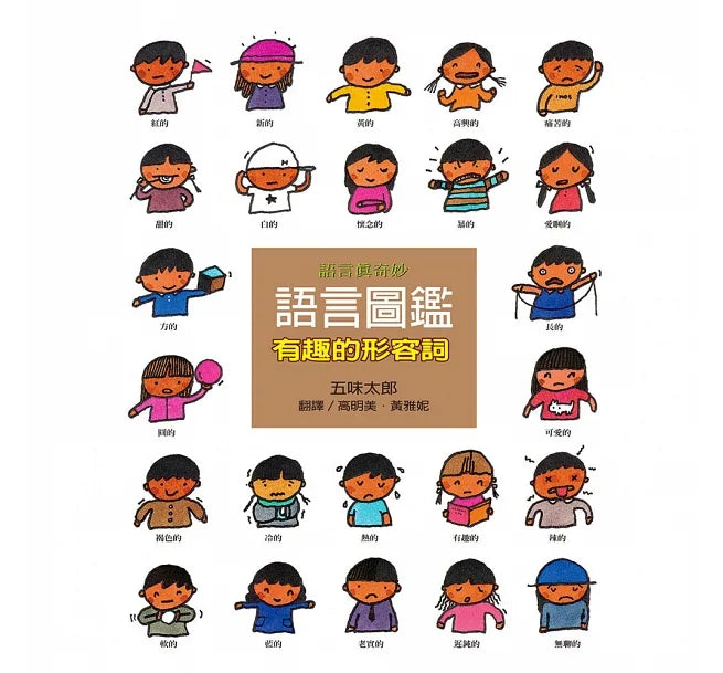 圖畫書創意大師─五味太郎的這本語言圖鑑《有趣的形容詞》,將解救您在形容詞使用上的一成不變,讓您自在表達自己,並開拓您的想像力,讓您認識更多生動有趣的形容詞!