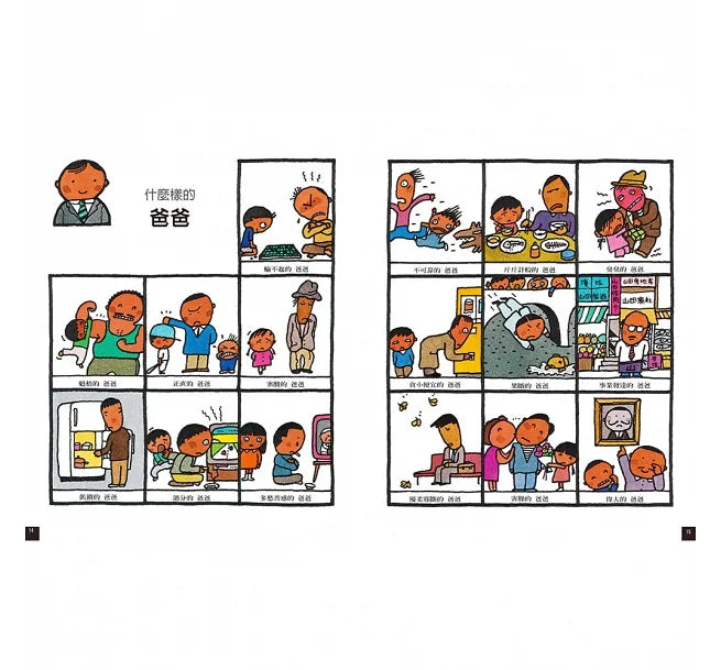 圖鑑中每一頁的左上方都有一個不加修飾的「原味」名詞,包括有人物方面的名詞─媽媽、爸爸、嬰兒;動物方面的名詞─無尾熊、鱷魚、鯊魚、變色龍;以及非生物的食物、山、機器人、帽子、天氣等十六種事物,而每一種名詞,五味太郎各運用了十六個語詞來形容它。名詞和形容詞搭配組合之下,產生了:「裝模作樣的鯊魚」、「不茍言笑的鱷魚」、「不可靠的爸爸」、「無可救藥的嬰兒」、「眼明手快的媽媽」等250個趣味生動的語詞和畫面。五味太郎用他筆下精準幽默的圖像語言,帶領我們理解各個形容詞的含義,單是從人的表情、肢體動作,就能對該形容詞的意義豁然開朗,讓您大呼過癮!