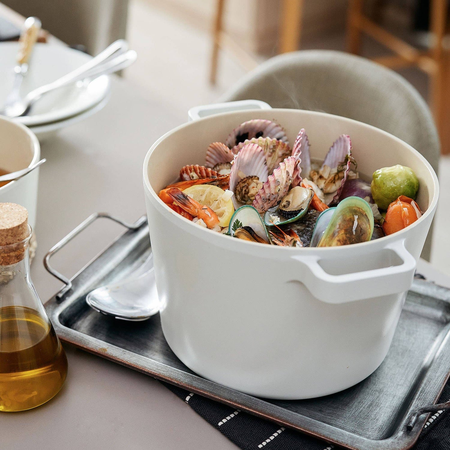 Perfect for preparing large amount of your favorite soup, stew or chili. Stylish Scandinavian inspired design with simple contours. - Healthy Ceramic Coating - Energy efficient, heats up food more quickly and evenly - Aesthetically pleasant with ergonomic natural design - Great gift for wedding, birthday, graduation and other special occasions - Durable, Easy to clean but Not Dishwasher safe - Do not use abrasive cleaners - Not for microwave use * Limited Time Warranty * Reddot Design Award 2020 Notice: Some induction devices may not operate depending on the manufacturing model and hob size