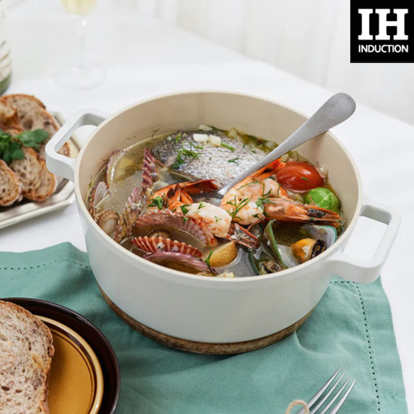 Energy Efficient: Lightweight cast aluminum with excellent heat conductivity. Heats food quickly and evenly, reducing energy consumption. Compatible with induction, electric, radiant, and gas stovetops.