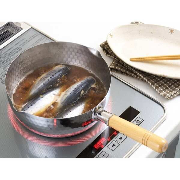 日本國民雪平鍋, 不鏽鋼材質超級輕便,只有0.5-0.6公斤,裝滿食材也不會超過1.5公斤。可用於明火、電磁爐,受熱均勻導熱極快,蓄熱性強, 做起飯來非常方便快捷能煮,能燉,能炒,能炸。