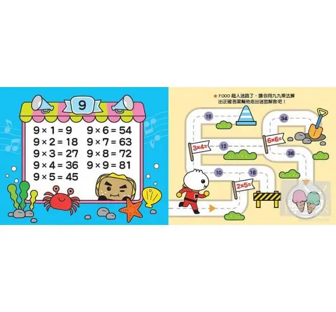 2. 內含1~9的九九乘法表與簡易迷宮遊戲,讓孩子奠定數學基礎。