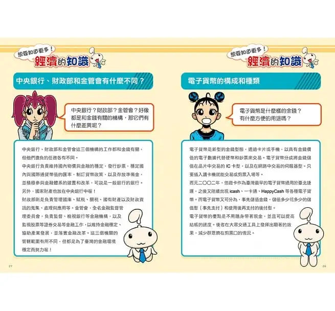 ‧包含儲蓄、貨幣、信用卡、外匯、稅金、股票等主題,將常見的金融議題一網打盡。