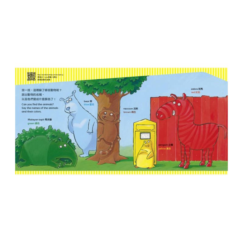 書末特別邀請幼兒教育專家邱瓊慧教授撰寫專業導讀,提供家長更多利用繪本與孩子互動的妙方,以及附QR Code音檔的遊戲頁面,讓孩子輕鬆認識顏色和動物的雙語說法。