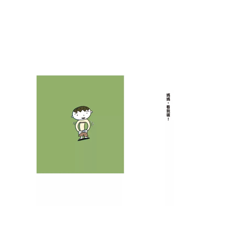本書從頭到尾,畫面中的媽媽都只出現下半身。這樣一來,閱讀角度就會和小男孩同高度,看著這個孩子的每個動作、表情,以及他要做的事情,就如同本書希望媽媽也能一直關注孩子。