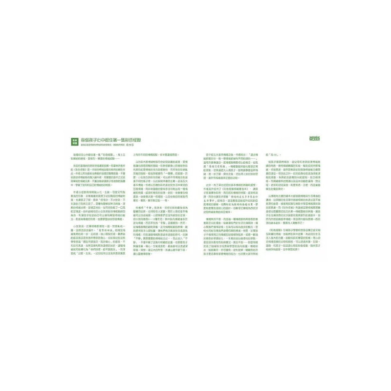 以情緒為主題的繪本大都強調情緒與生活情境的連結,以具體的生活事件描繪情緒的來源以及不當表現的後果,接著再試圖引導孩子學習情緒調節與合宜表達。但《彩色怪獸》則直接呈現情緒管理最基礎也最重要的能力元素~情緒覺察與辨識,讓孩子在充滿詩意的文字與藝術氣息濃烈的畫面中,自然而然地認識基本情緒。《彩色怪獸》呈現情緒管理最基礎也最重要的能力元素~情緒覺察與辨識,讓孩子在充滿詩意的文字與藝術氣息濃烈的畫面中,自然而然地認識基本情緒。《彩色怪獸情緒著色本》則讓孩子在選擇色彩時,再次認知情緒的特質、感受和表現,同時也讓孩子理解「情緒的產生多半來自於生活事件」。透過著色活動提升孩子對自我情緒的覺察,也具有宣洩情緒的療癒效果。