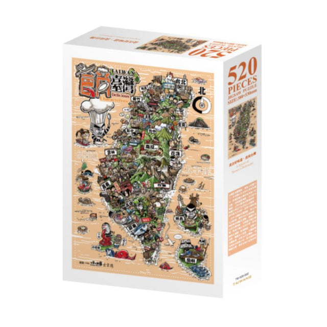 《食在好味道-食尚台灣》拼圖以全台各地代表性美食為主題,將台灣的飲食文化、地方特色與生活記憶,濃縮成一幅細膩又熱鬧的美食地圖。