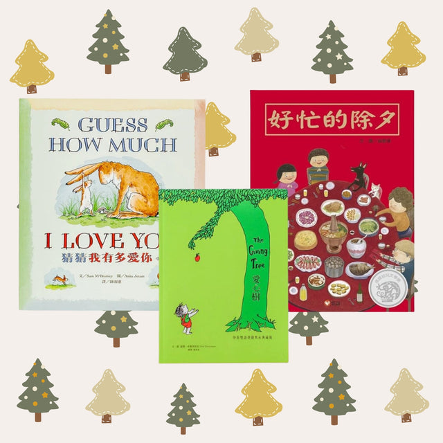 精選三本長年深受家庭喜愛的中英雙語繪本:《愛心樹》、《好忙的除夕》、《猜猜我有多愛你》。從溫柔陪伴、文化節慶到親情表達,每本都能打動孩子的心,也陪伴家庭建立美好的共讀時光。雙語呈現讓孩子能在熟悉的中文語境中接觸英文,不論是日常閱讀、節慶活動或睡前故事,都是值得反覆閱讀的必備經典。