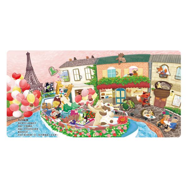 原創插畫家用細緻的筆觸、柔和的顏色,畫出一隻隻可愛的動物和各種場景,如童話般的糖果屋、巴黎塞納河畔、夕陽下的海灘等地,風格溫暖又富童趣,可加強孩子的美感體驗,提升美學素養。